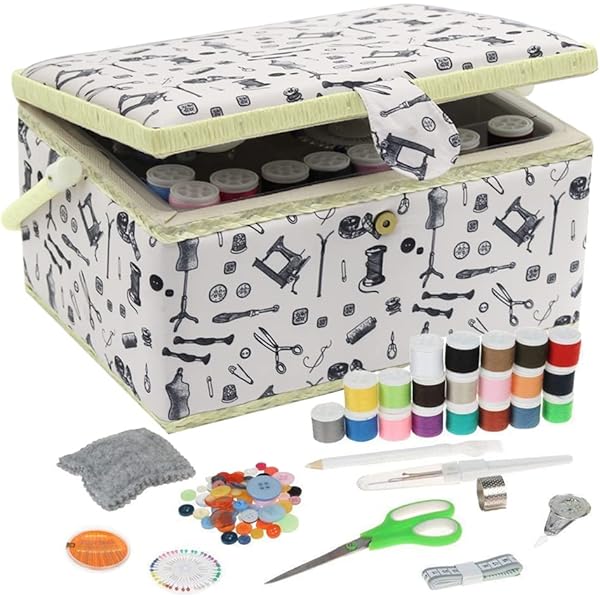 Amazon Com Sewing Basket With Floral Print Design Sewing Kit Storage Box With Removable Tray Built In Pin Cushion And Interior Pocket By Adolfo Design Medium 11 X 7 X 5 5